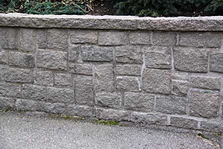 Granitmur i jämna skift som läggs i förband och ger ett solitt och stramt intryck. En granitmur passar lika bra som grundmur till hus som till stödmur.