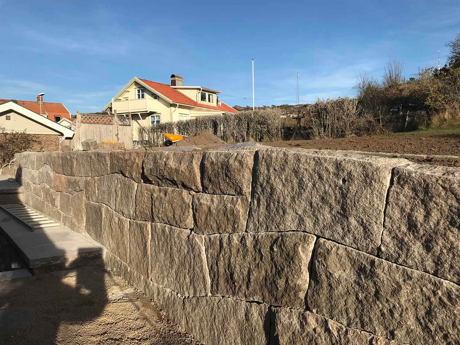 Att anlägga en blockstensmur är ett snabbt och hållbart sätt att anlägga en stödmur eller som avgränsare mellan två ytor då granitmuren blir synlig på båda sidorna.
